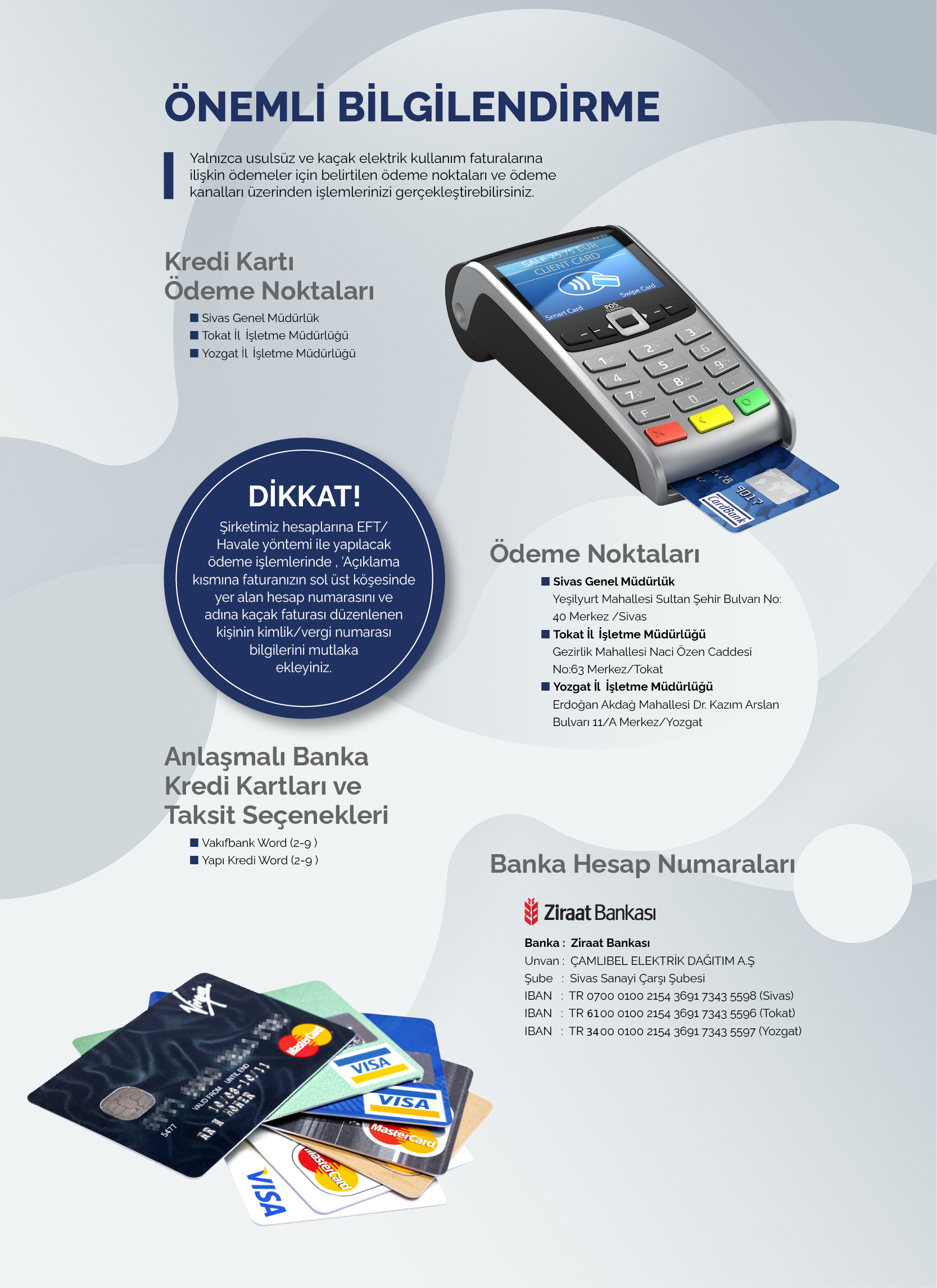 İşletme Müdürlüklerimizden ve Şirketimize ait banka hesap numaralarına EFT/Havale yolu ile borç ödemeleri gerçekleştirilmektedir.
